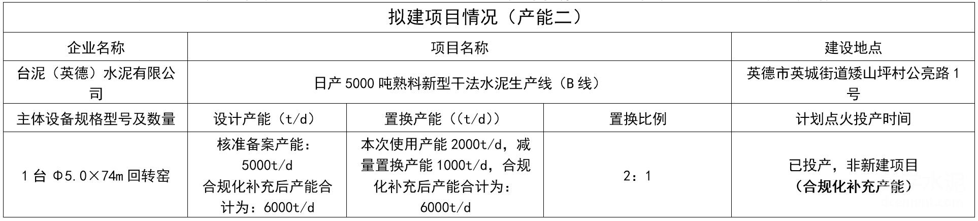 台泥(英德)两条水泥熟料线分别补充产能至6000t/d